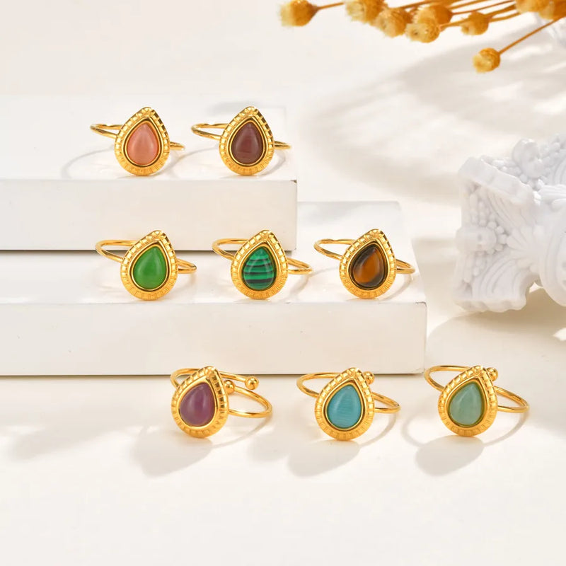 Wholesale Jewelry Vintage Style Maximalism Water Droplets 201 Stainless Steel 18K Gold Plated Plating Rings