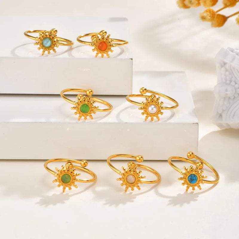 Wholesale Jewelry Vintage Style Sun 201 Stainless Steel 18K Gold Plated Plating Rings