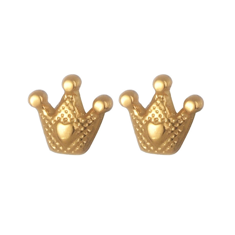 1 Pair Casual Simple Style Streetwear Heart Shape Crown Plating 304 Stainless Steel Ear Studs
