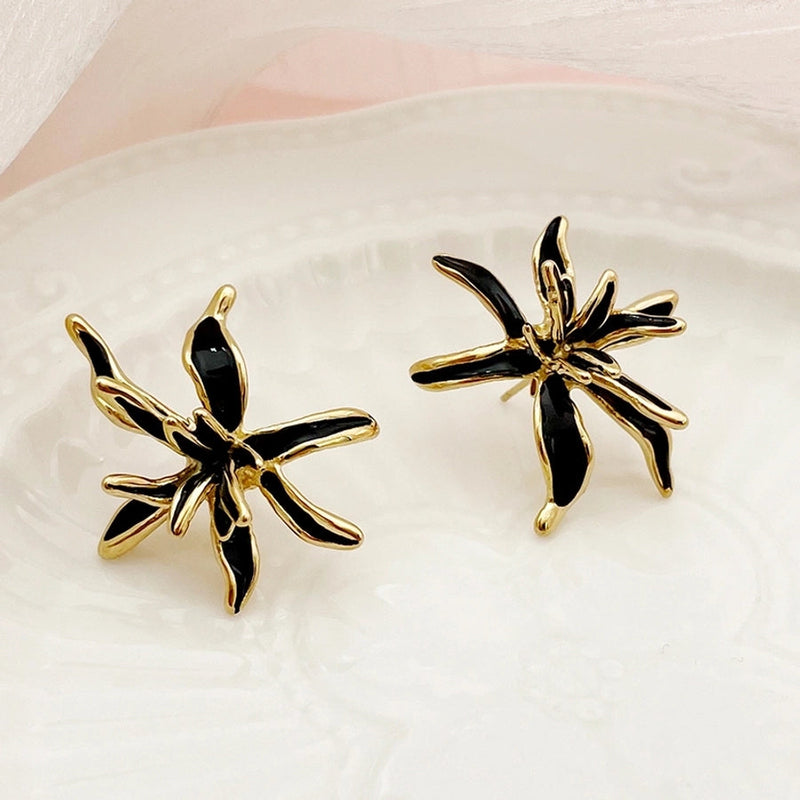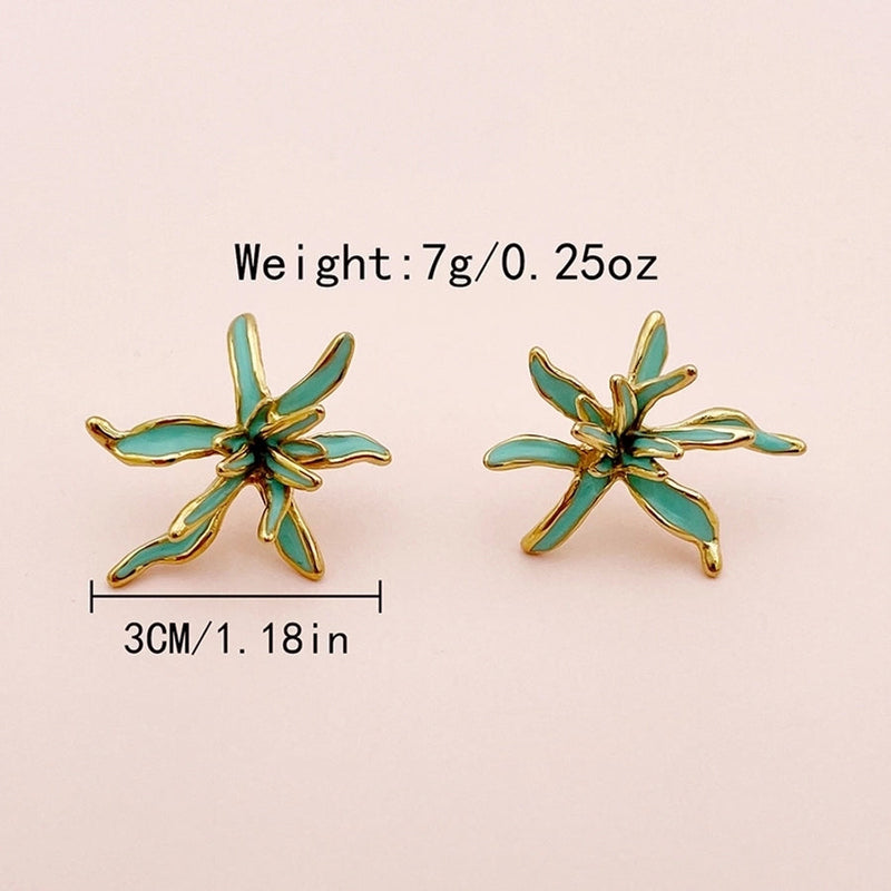 1 Pair Elegant Cute Artistic C Shape Pentagram Flower Enamel Inlay 304 Stainless Steel Zircon 14K Gold Plated Ear Studs