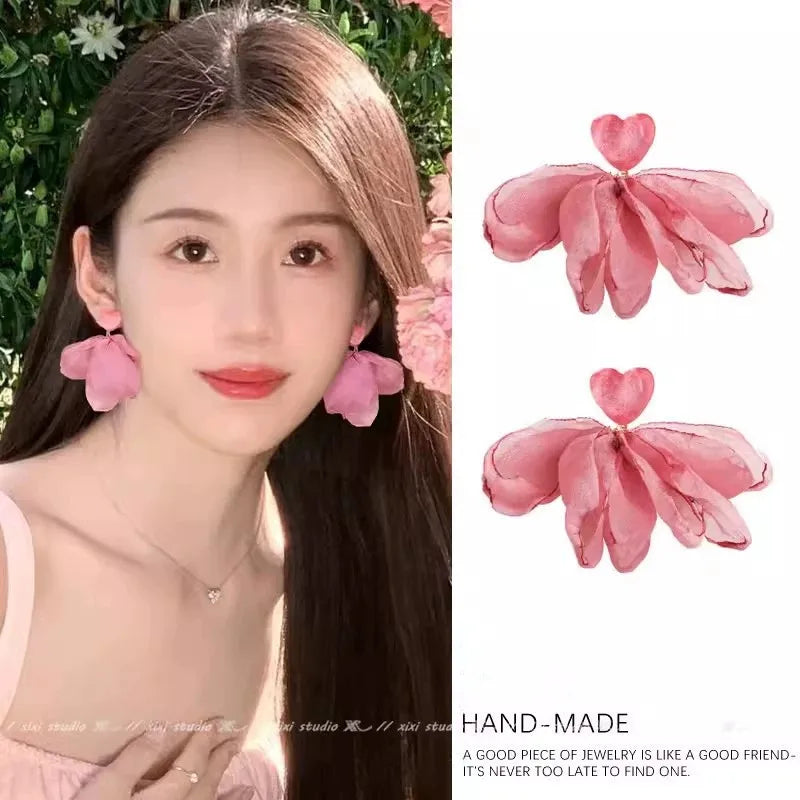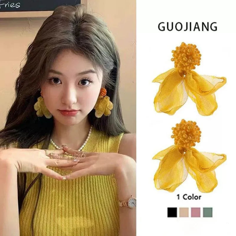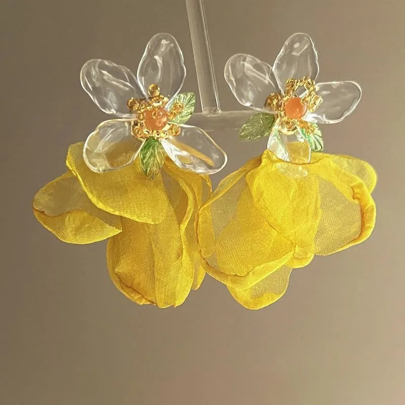 1 Pair Elegant Lady Vacation Geometric Flower Plating Cloth Drop Earrings