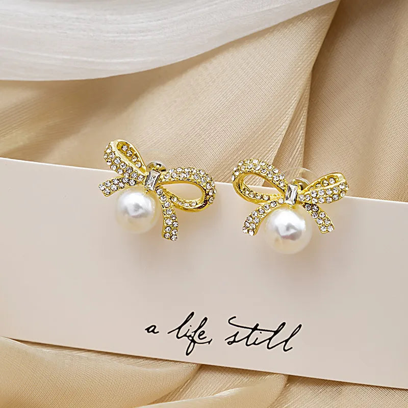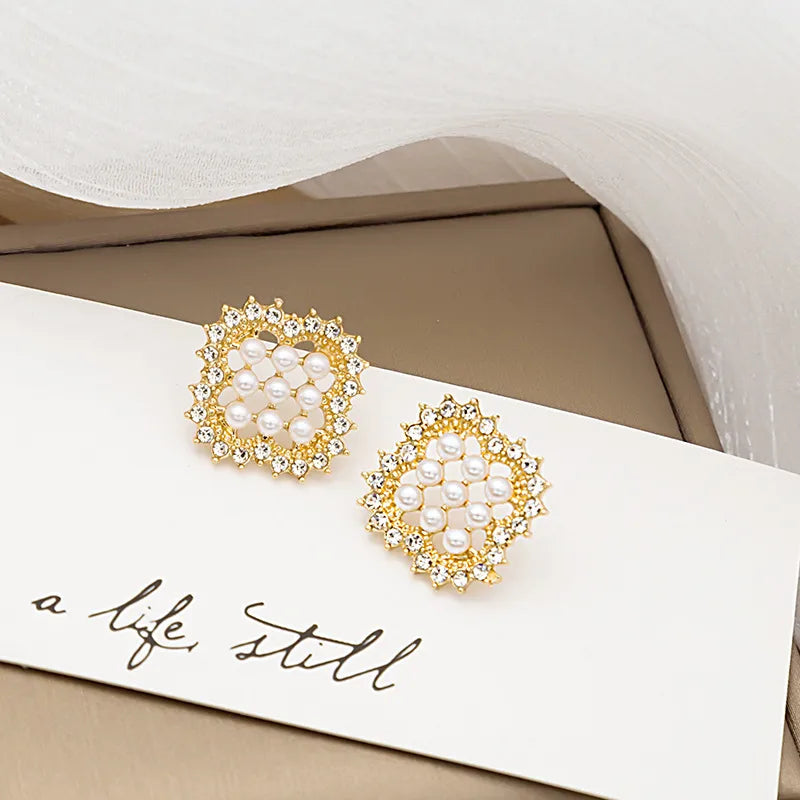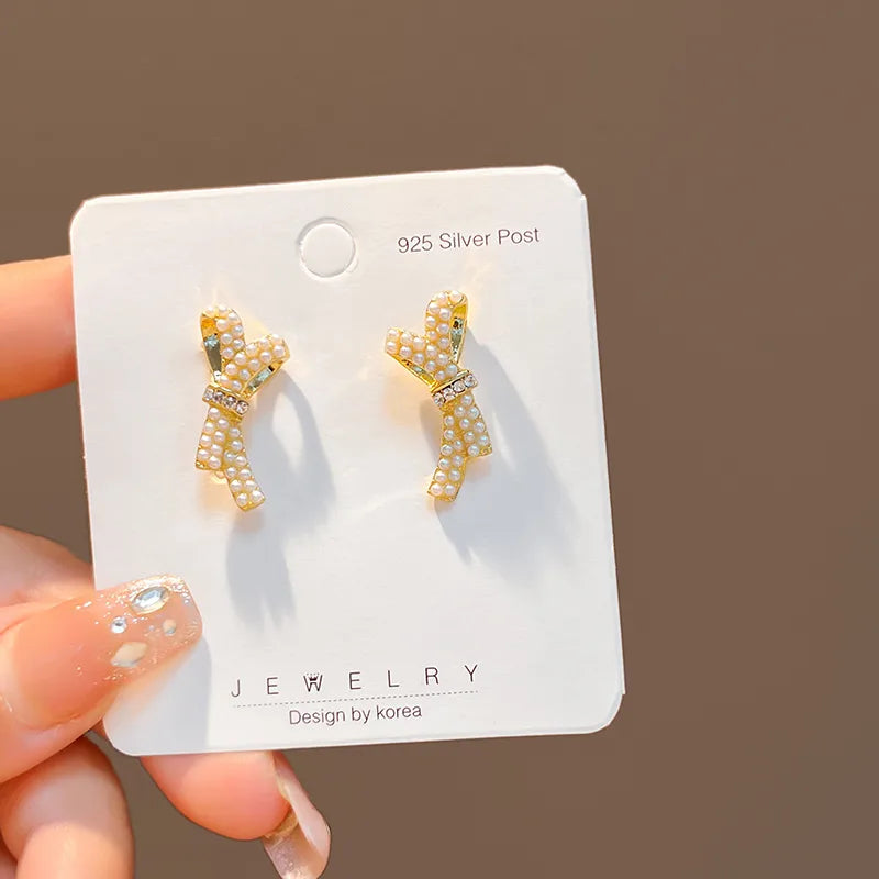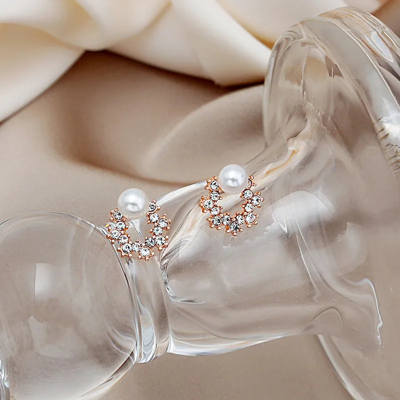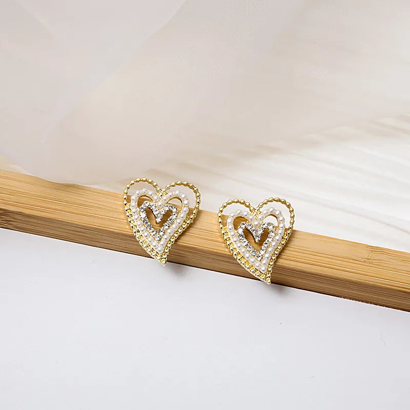 1 pair fashion bear heart shape alloy plating artificial pearls rhinestones women's earrings