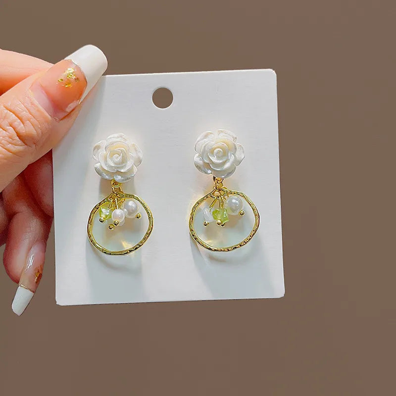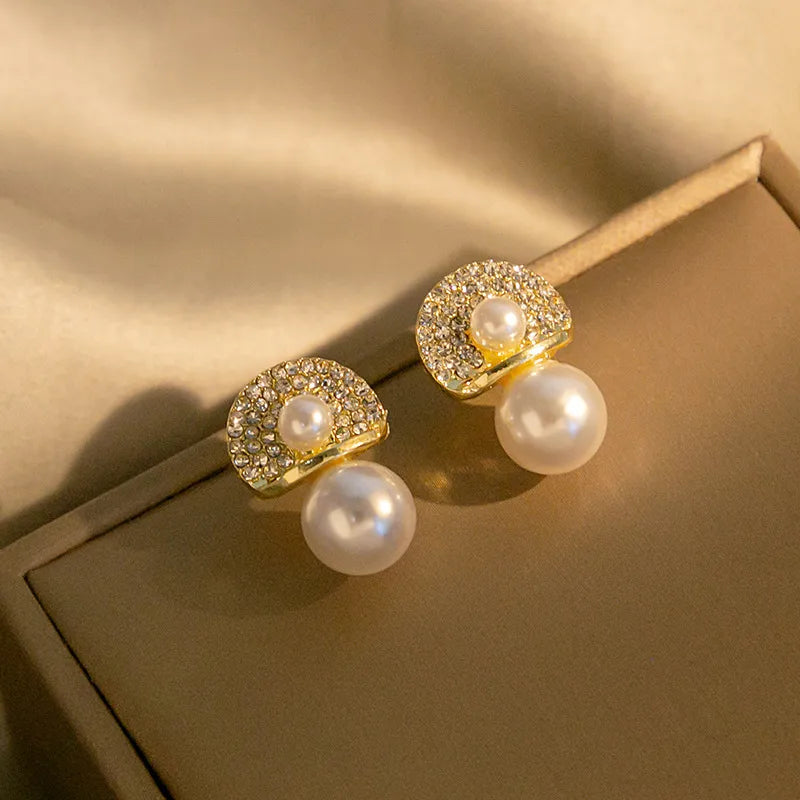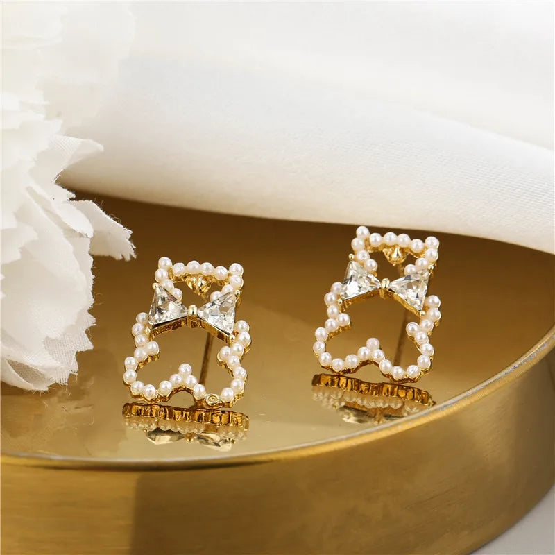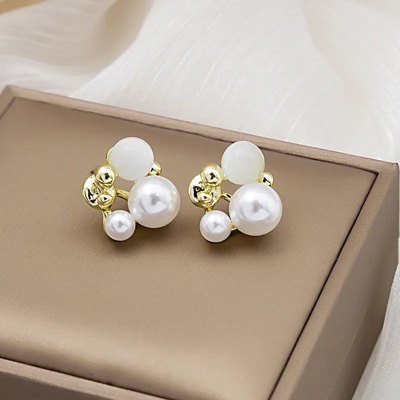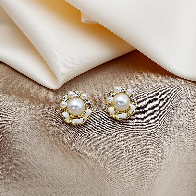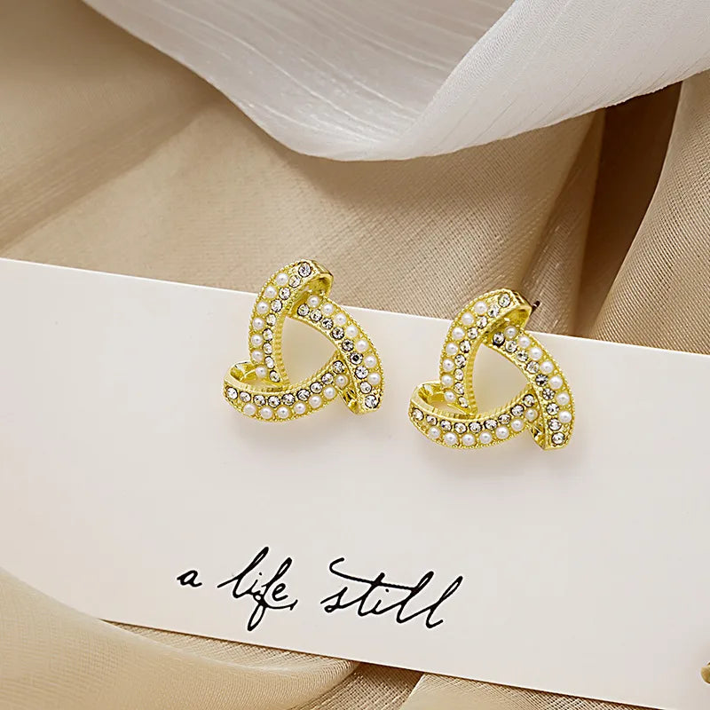 1 pair fashion bear heart shape alloy plating artificial pearls rhinestones women's earrings