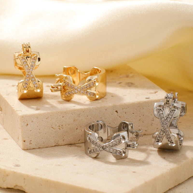 1 Pair Glam Luxurious Korean Style Geometric Inlay Copper Zircon K Gold Plated Ear clip
