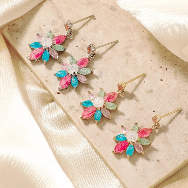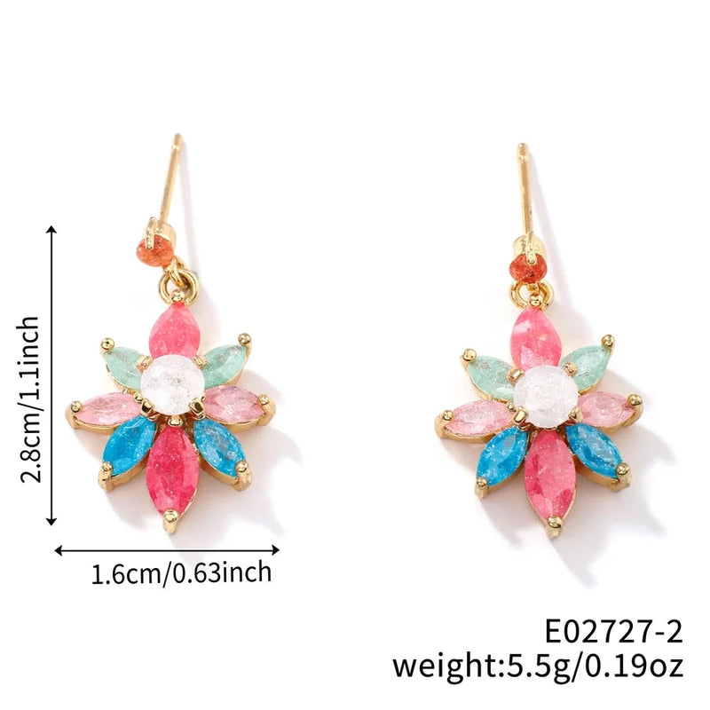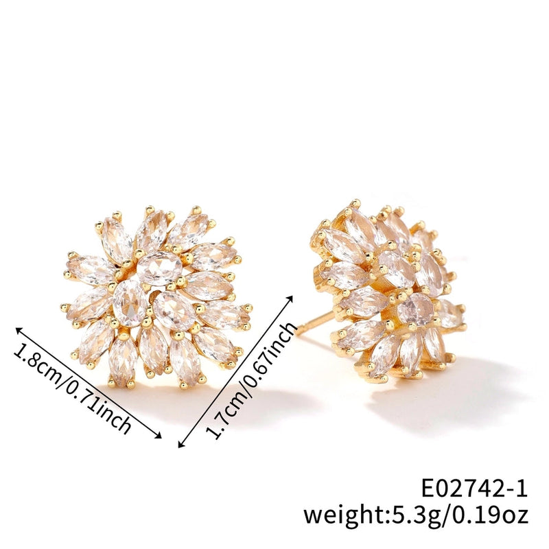 1 Pair Glam Pastoral Shiny Floral Inlay Copper Zircon K Gold Plated Rhodium Plated Ear Studs