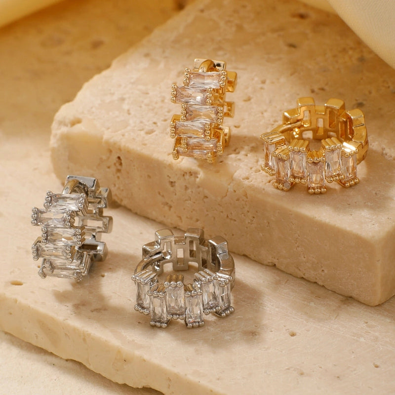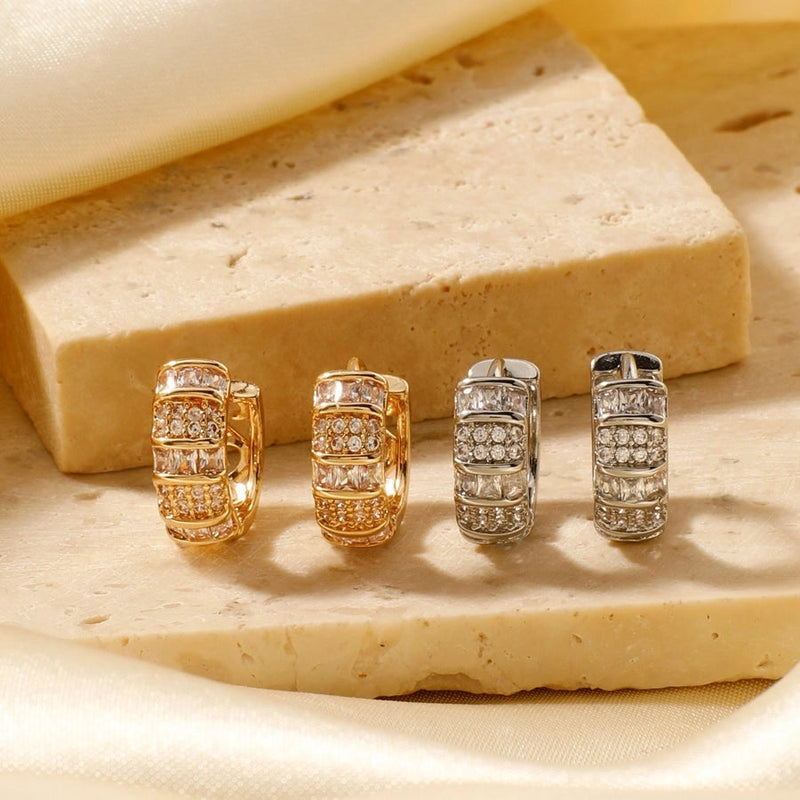 1 Pair Glam Simple Style Shiny Geometric Inlay Copper Zircon K Gold Plated Earrings