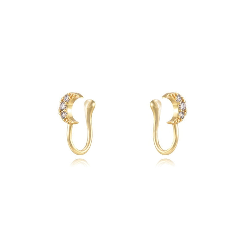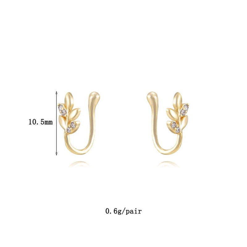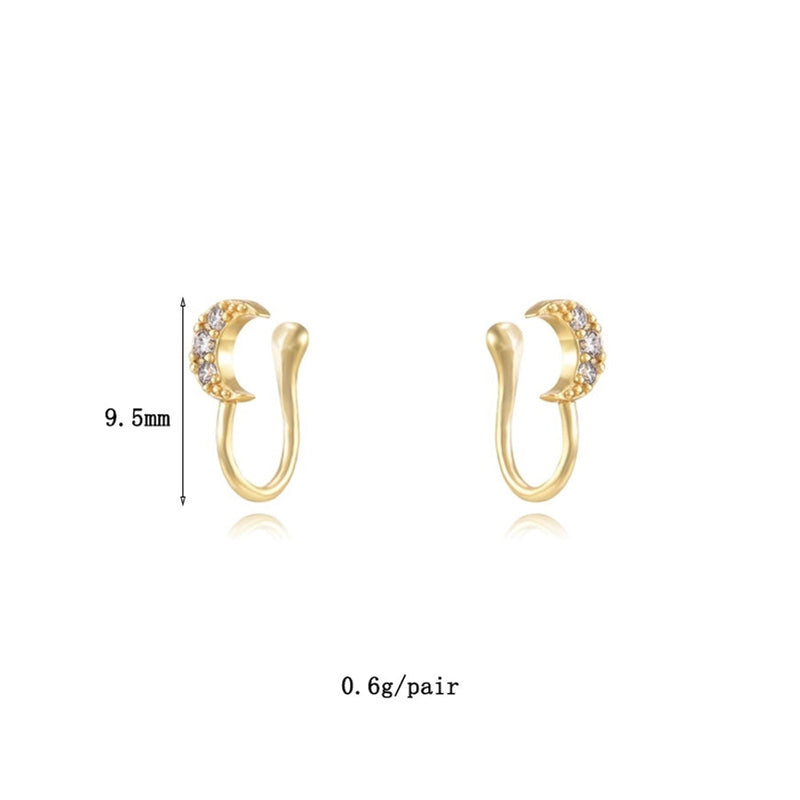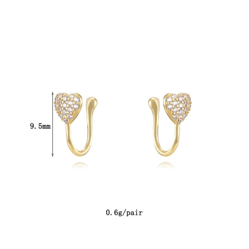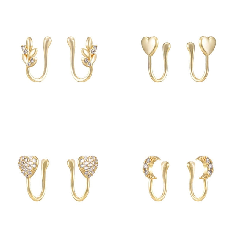 1 Pair IG Style Leaf Moon Heart Shape Inlay Copper Zircon Gold Plated Ear Cuffs