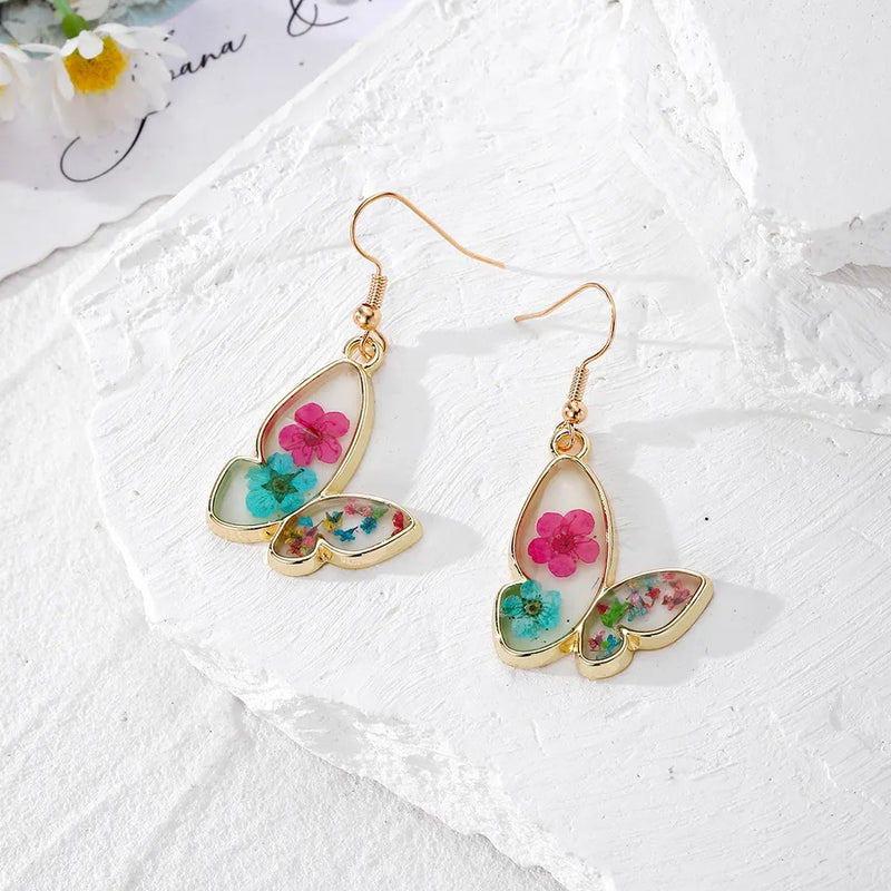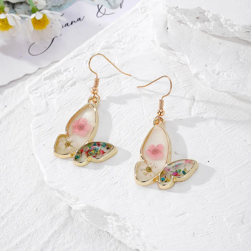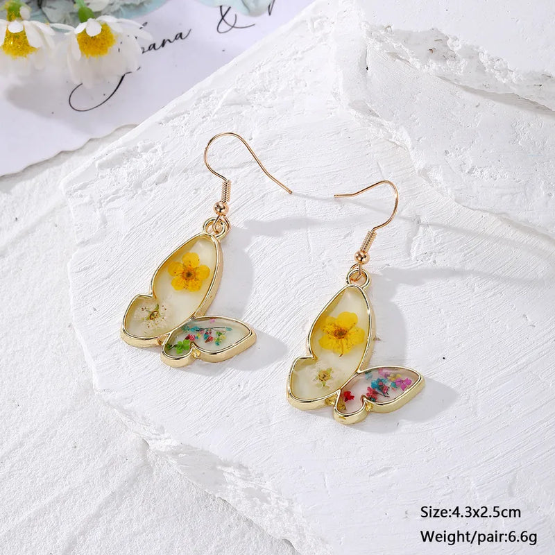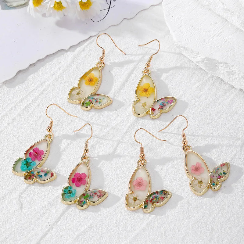 1 Pair Princess Cute Artistic Butterfly Alloy Natural Dried Flowers Drop Earrings