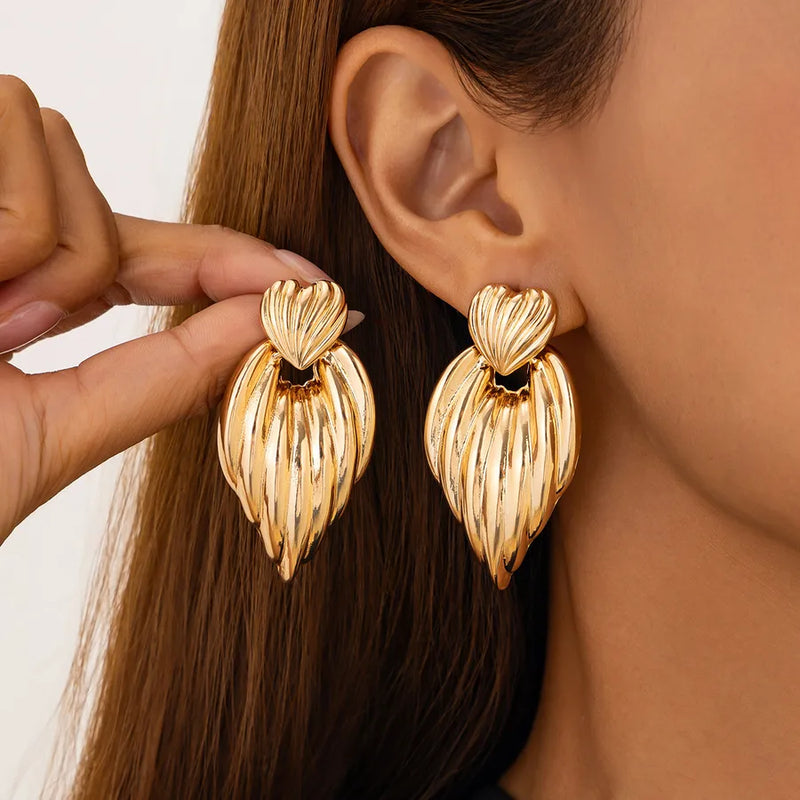 1 Pair Retro Classic Style Geometric Heart Shape Plating Metal Drop Earrings Ear Studs
