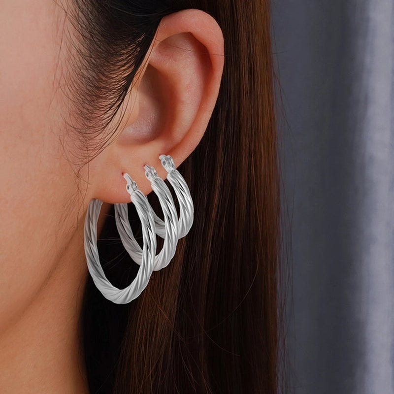 1 Pair Retro Simple Style Solid Color Plating 304 Stainless Steel Silver Plated Earrings
