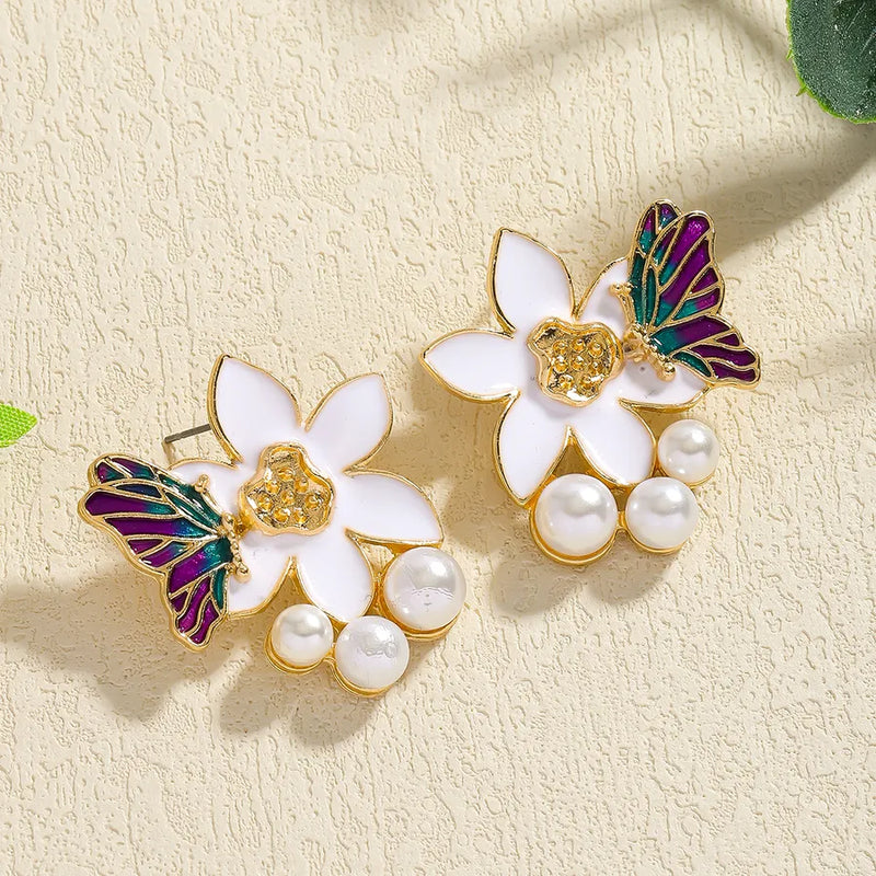1 Pair Sweet Commute Leaf Floral Imitation Pearl Alloy Ear Studs