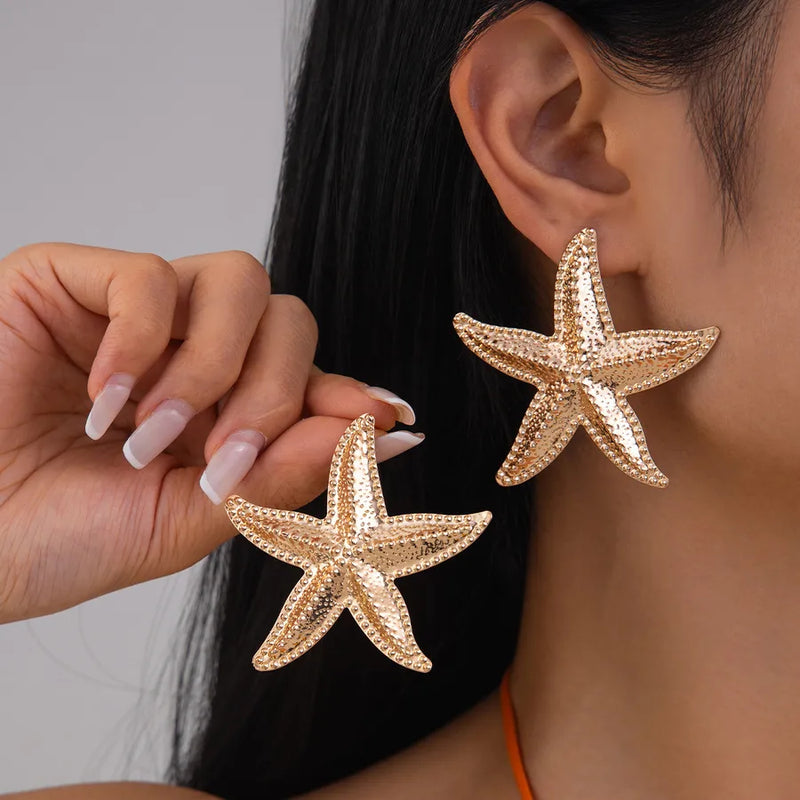 1 Piece 1 Pair Marine Style Classic Style Starfish Shell Plating Alloy Iron Drop Earrings Ear Cuffs Ear Studs