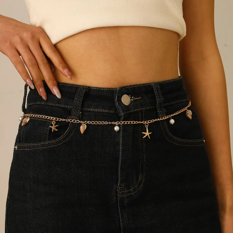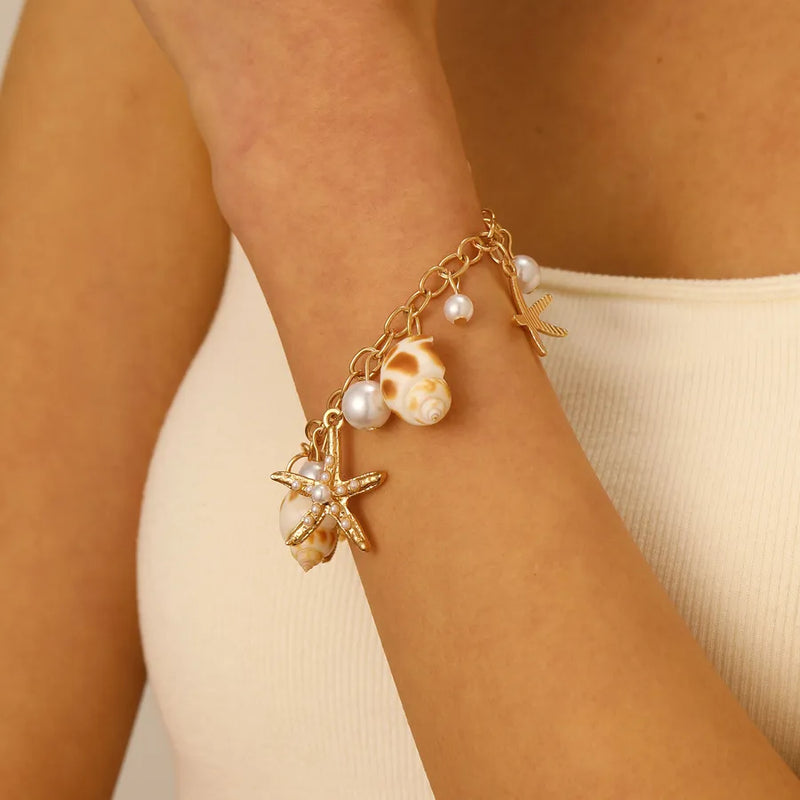 1 Piece 1 Set Elegant Lady Starfish Imitation Pearl Alloy Iron Plating Women's cable chain Jewelry Set