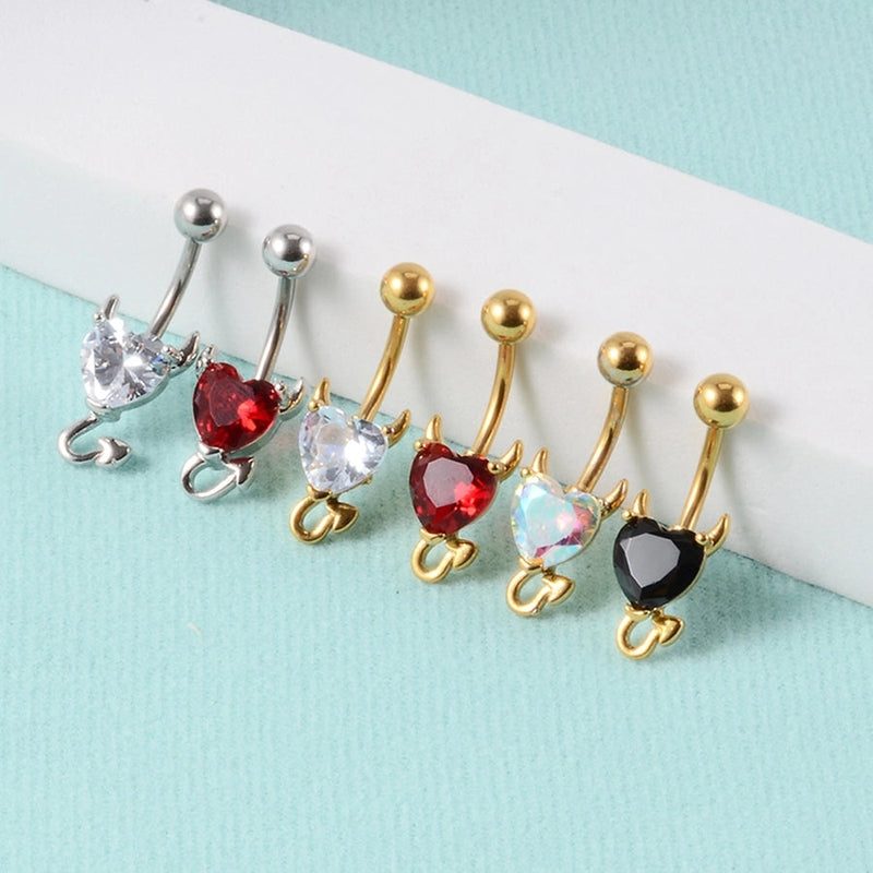 1 Piece Belly Rings IG Style Casual Cool Style Heart Shape 304 Stainless Steel Plating Zircon 18K Gold Plated