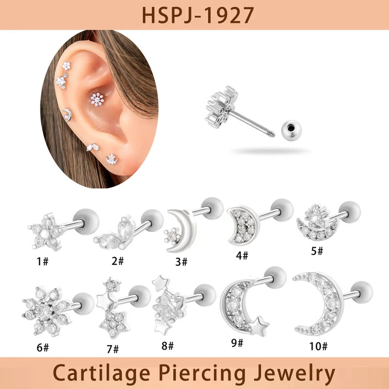 1 Piece Fashion Trend Simple Style Moon Flower Moon Flowers Copper Zircon Ear Studs
