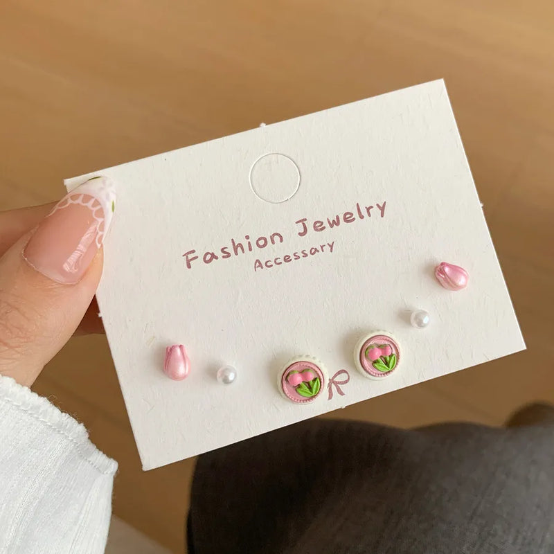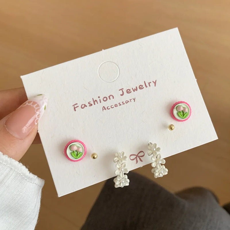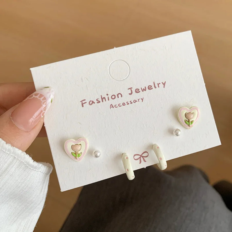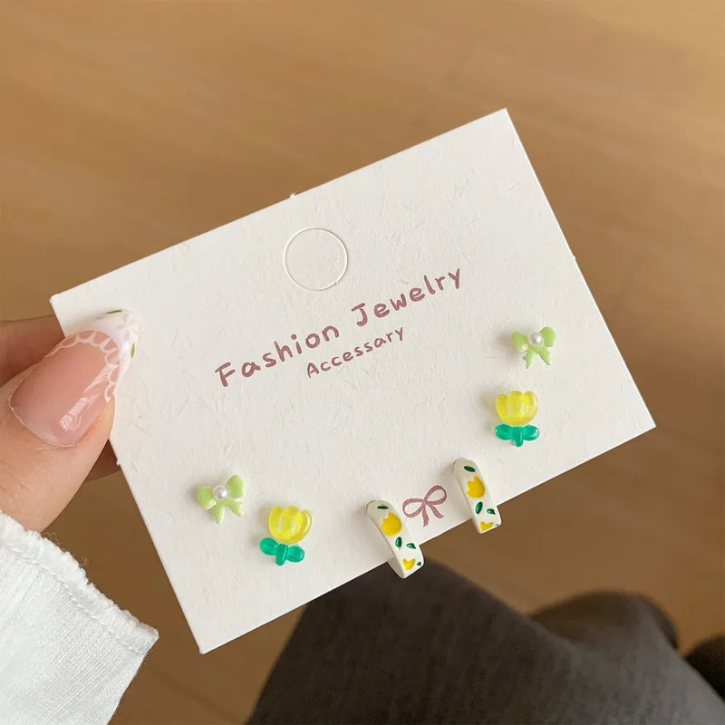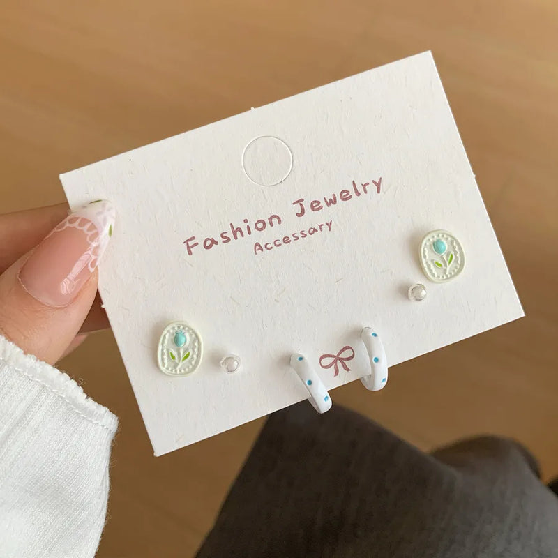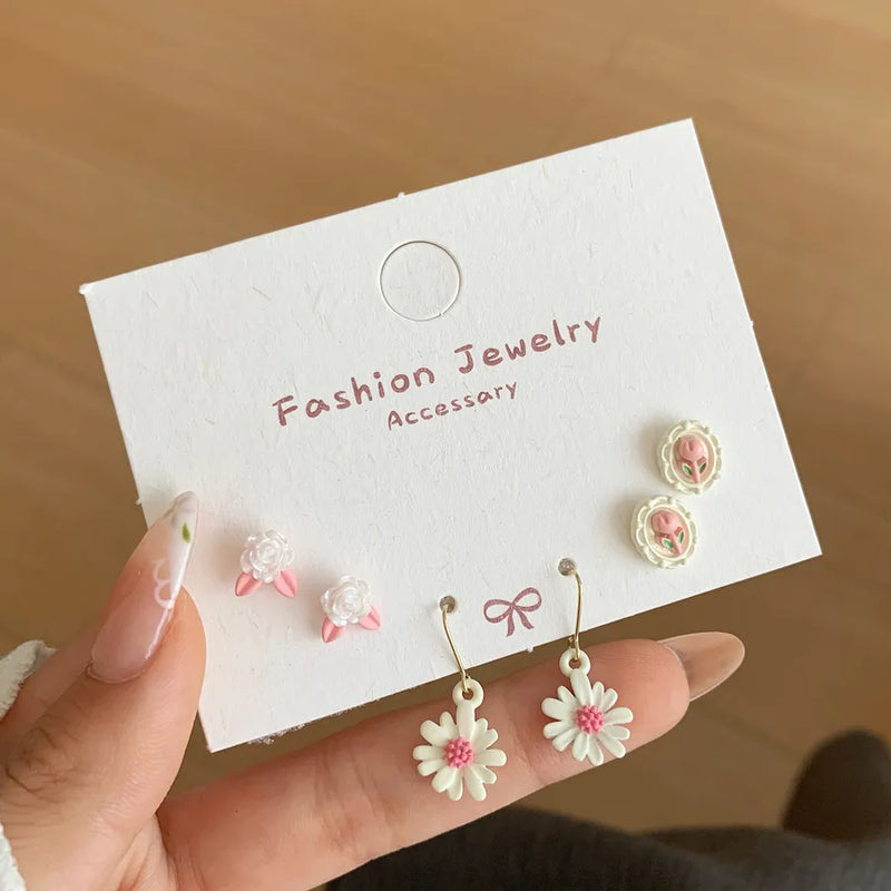 1 Set Cute Sweet Flower Enamel Alloy Ear Studs