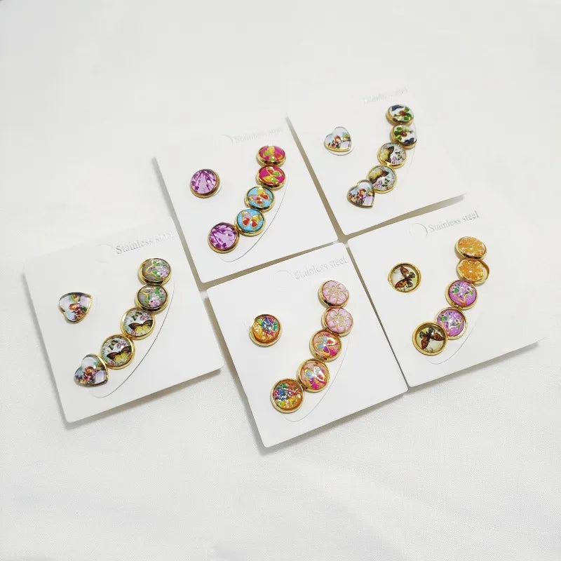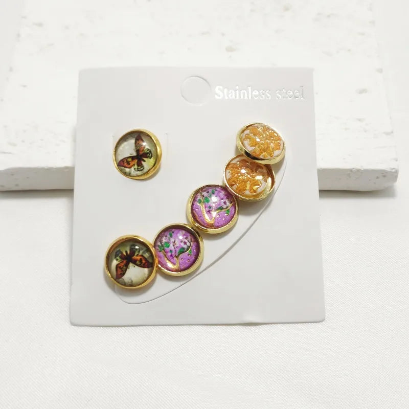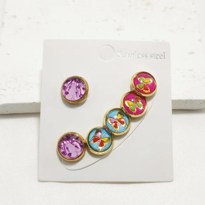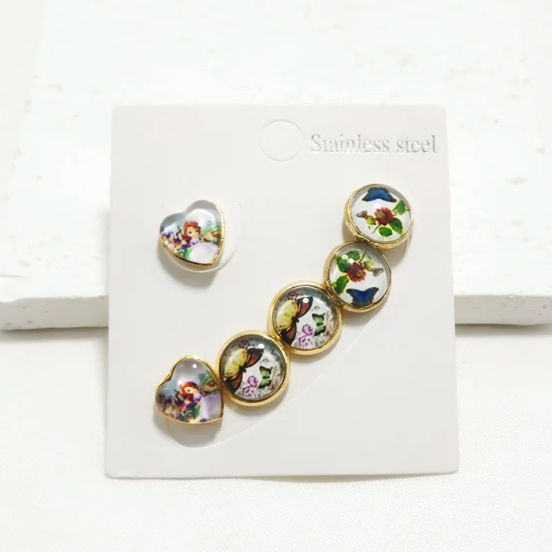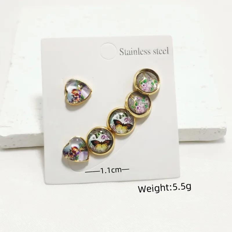 3 Pairs Princess Cute Simple Style Heart Shape Flower Butterfly 304 Stainless Steel 18K Gold Plated Butterfly Backs Ear Studs