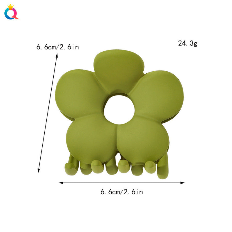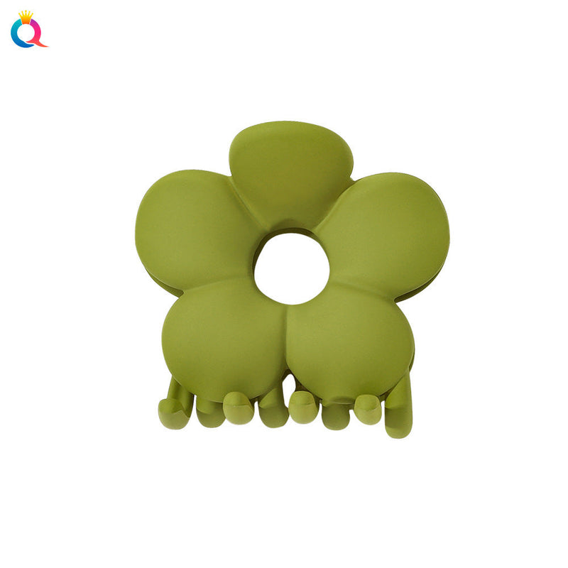 Frosted Hollow Five Petal Flower Hair Clip-Forest Green