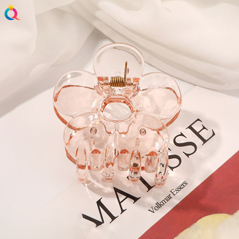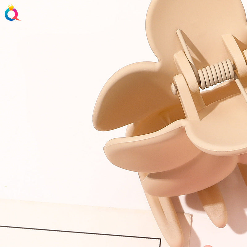 Frosted Hollow Five Petal Flower Hair Clip-Gray