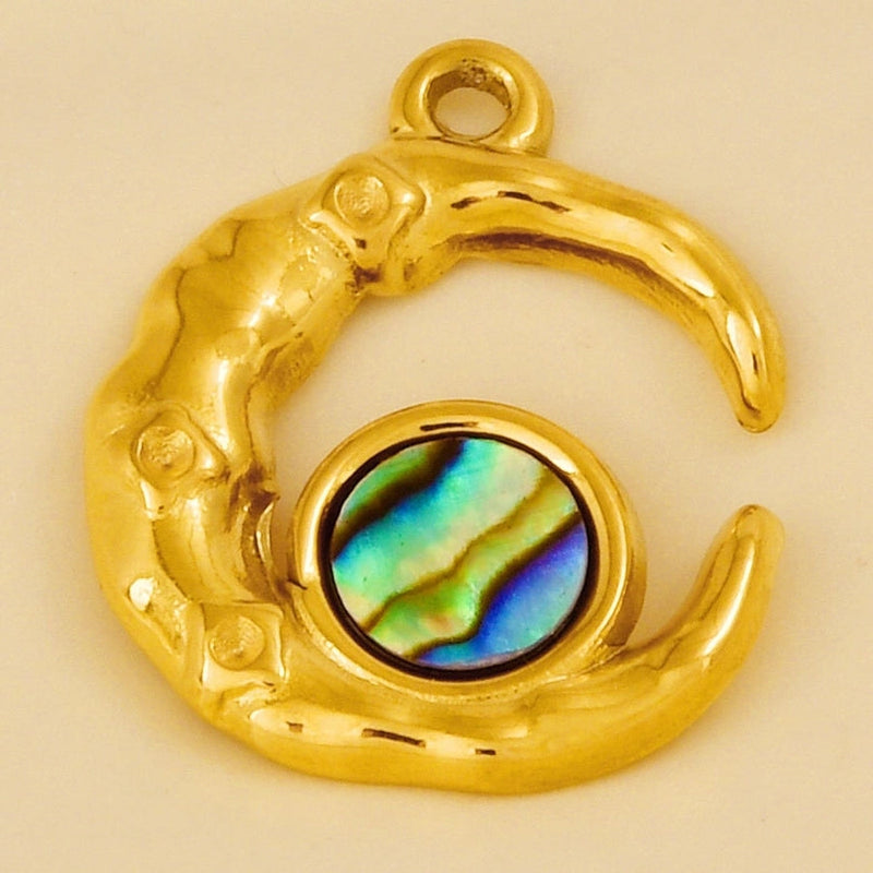 Jewelry Vintage Style Classic Style Moon 304 Stainless Steel Shell Abalone Shell 18K Gold Plated Irregular Plating Pendant Necklace