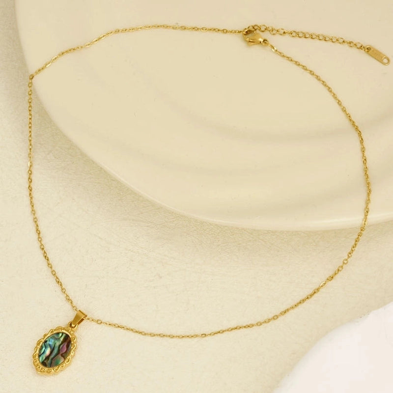 Jewelry Vintage Style Classic Style Oval 304 Stainless Steel Shell Abalone Shell 18K Gold Plated Irregular Plating Pendant Necklace