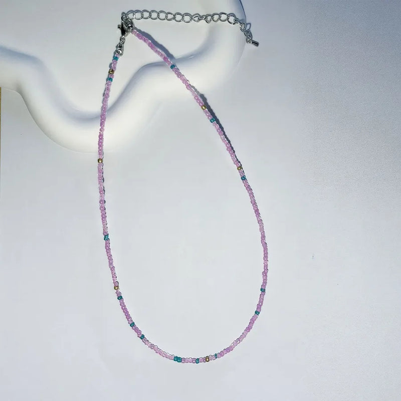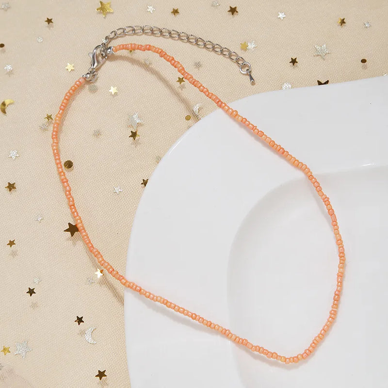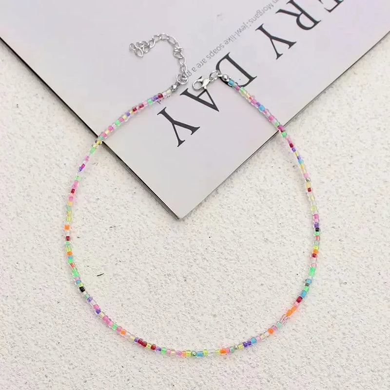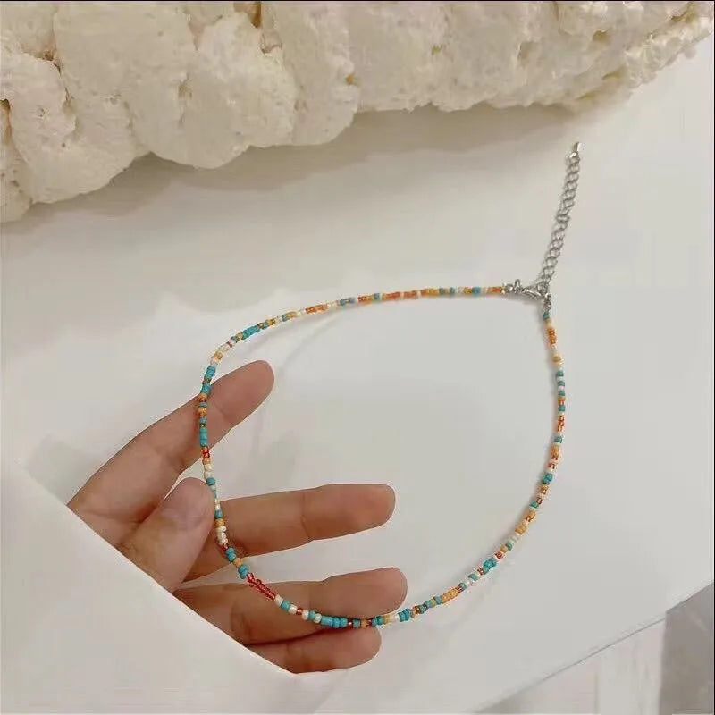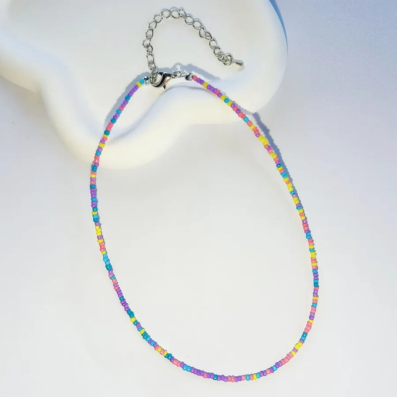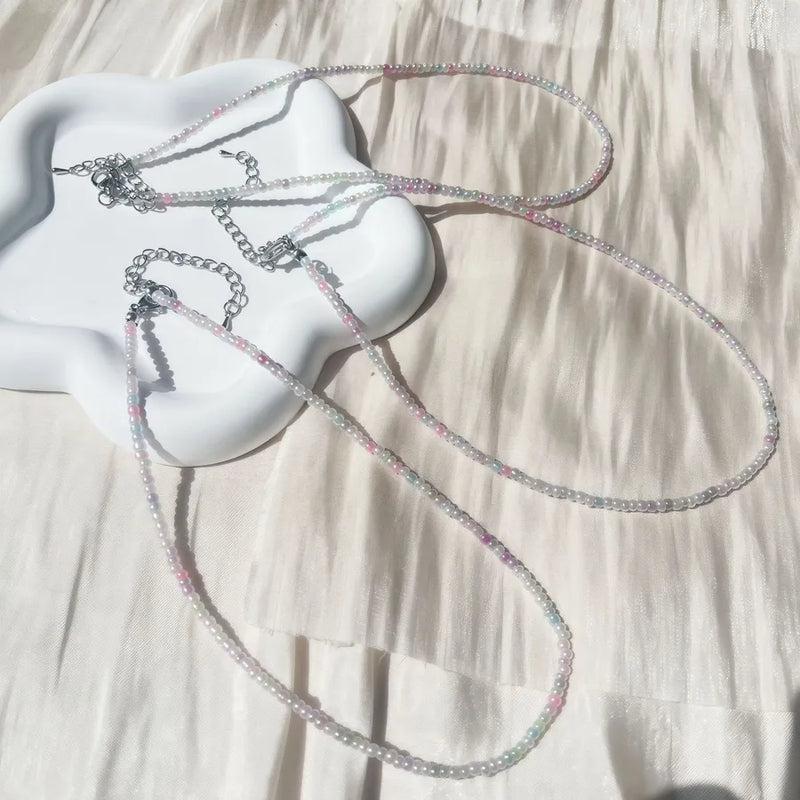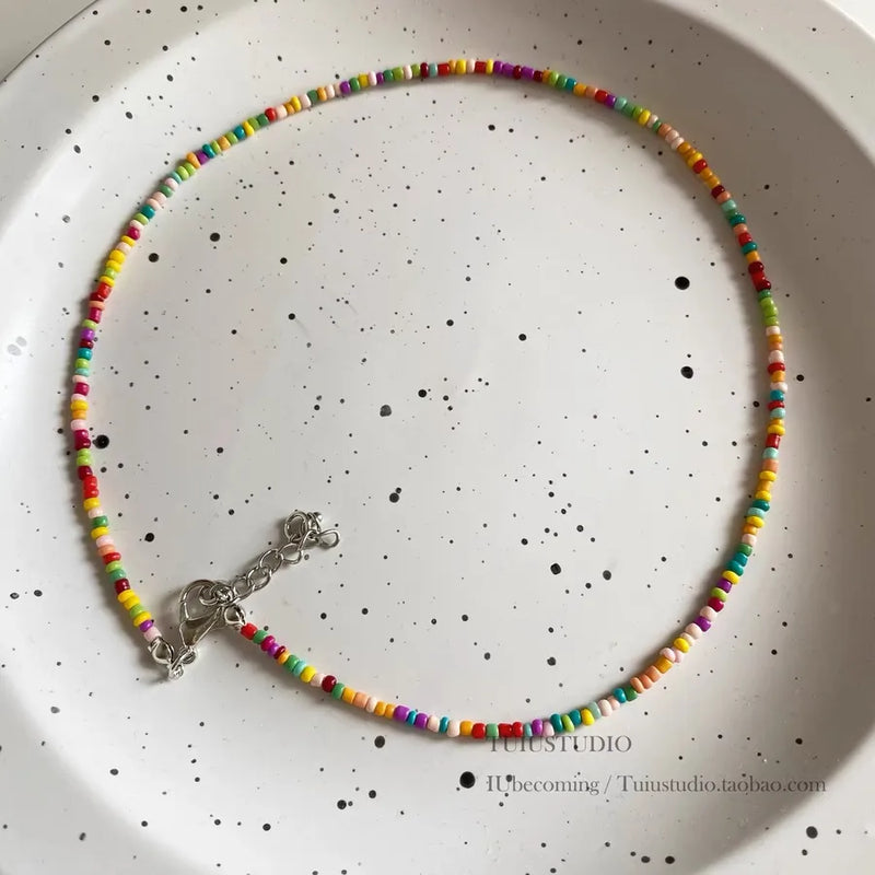 New Style Sweet Dopamine Small Rice-Shaped Beads Beaded Necklace Girly Style Rainbow Color Glass Beads Necklace Wholesale Women