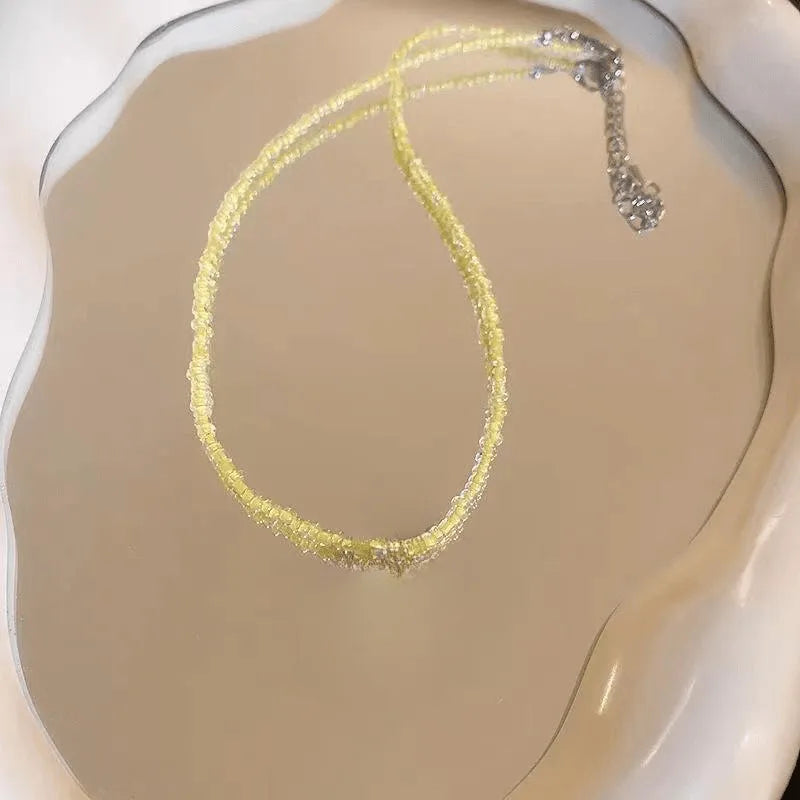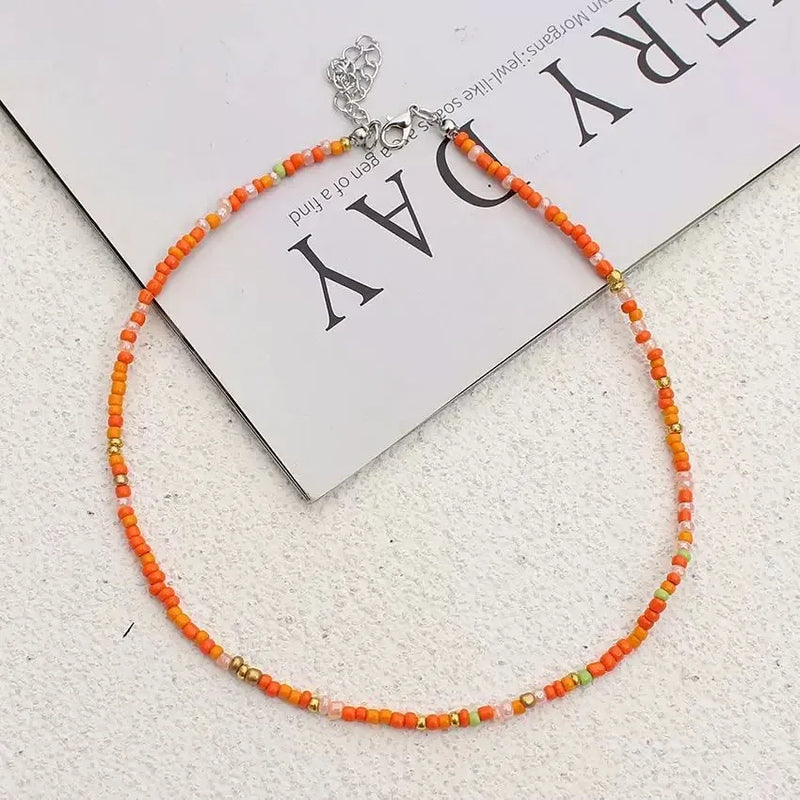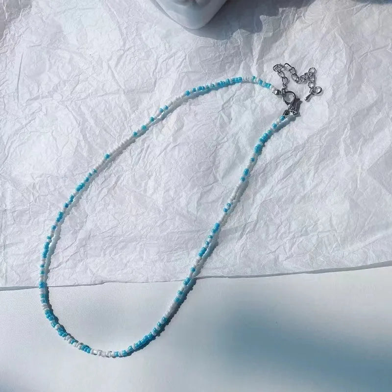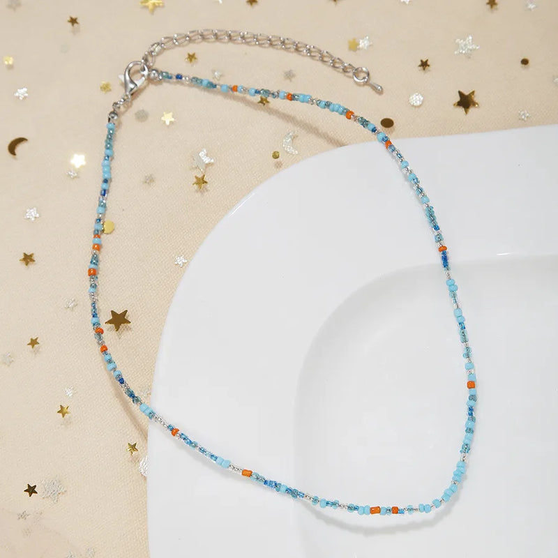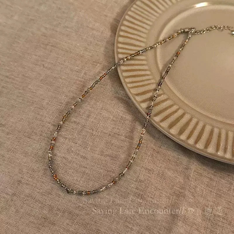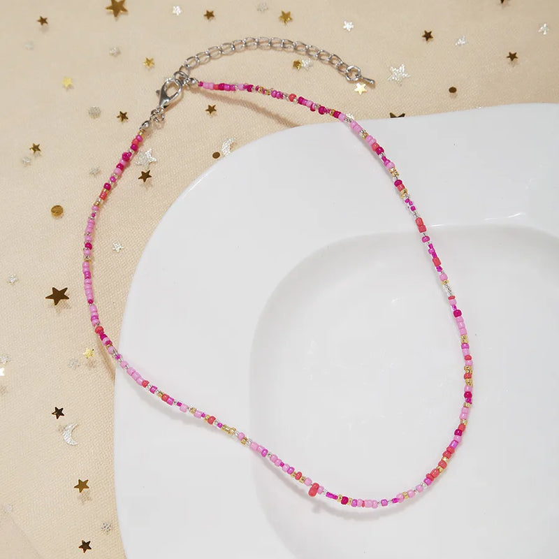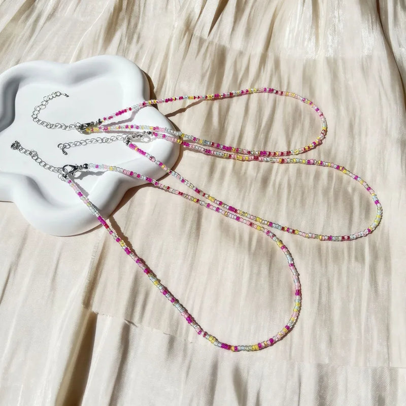 New Style Sweet Dopamine Small Rice-Shaped Beads Beaded Necklace Girly Style Rainbow Color Glass Beads Necklace Wholesale Women