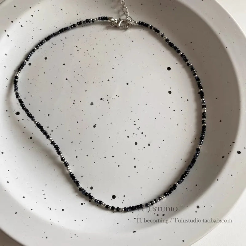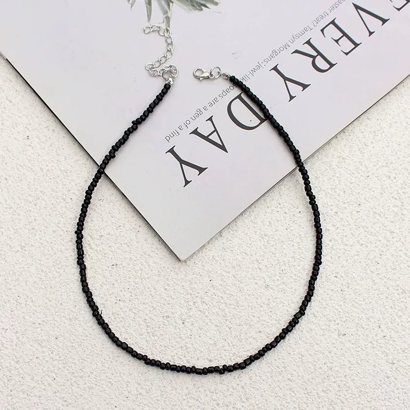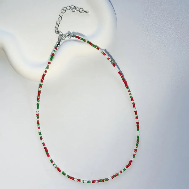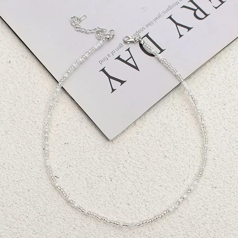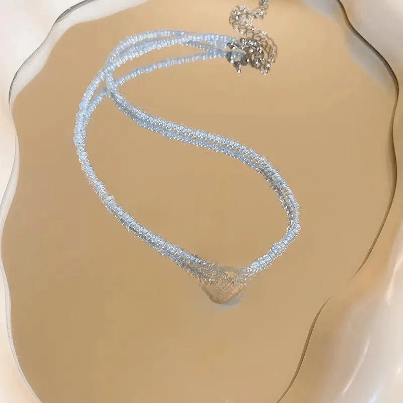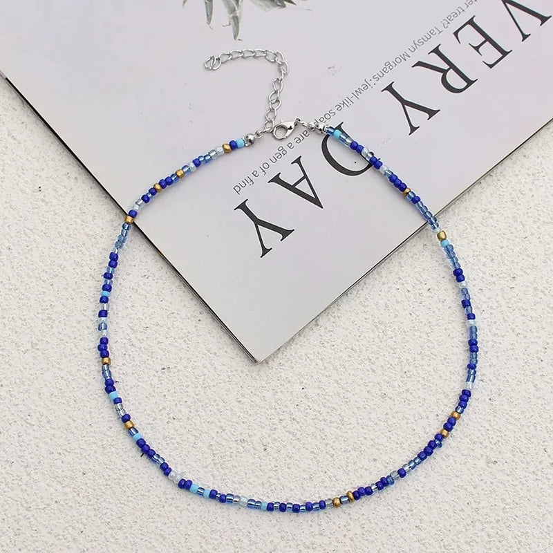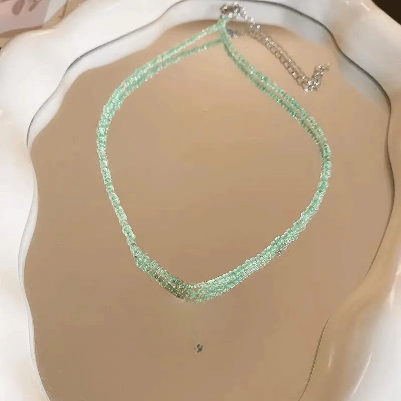 New Style Sweet Dopamine Small Rice-Shaped Beads Beaded Necklace Girly Style Rainbow Color Glass Beads Necklace Wholesale Women