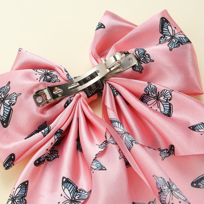 streamer french chiffon butterfly print head ring horsetail bow hair ring