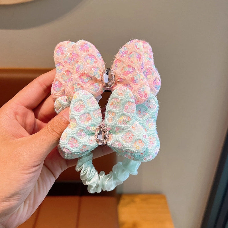sweet bow knot cloth inlay rhinestones hair tie