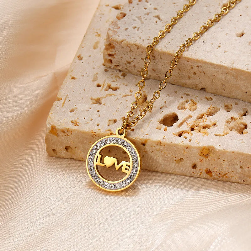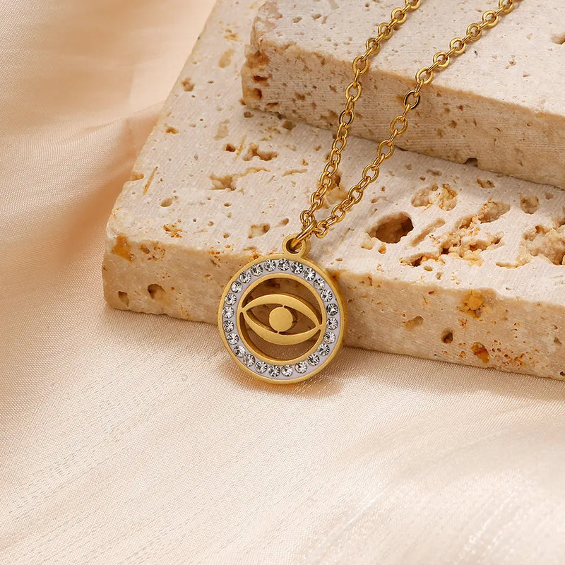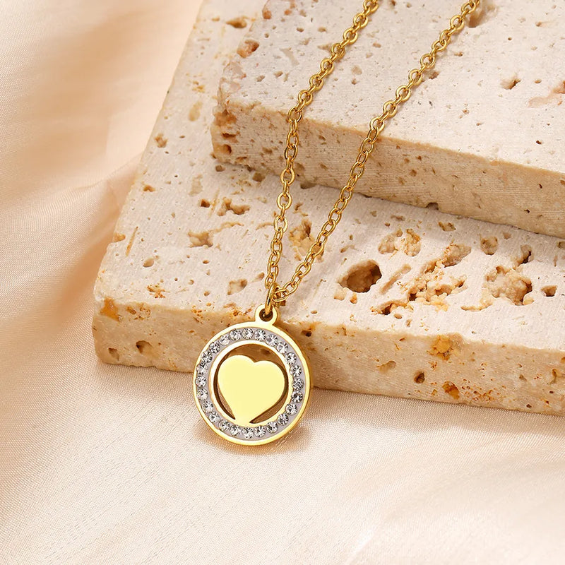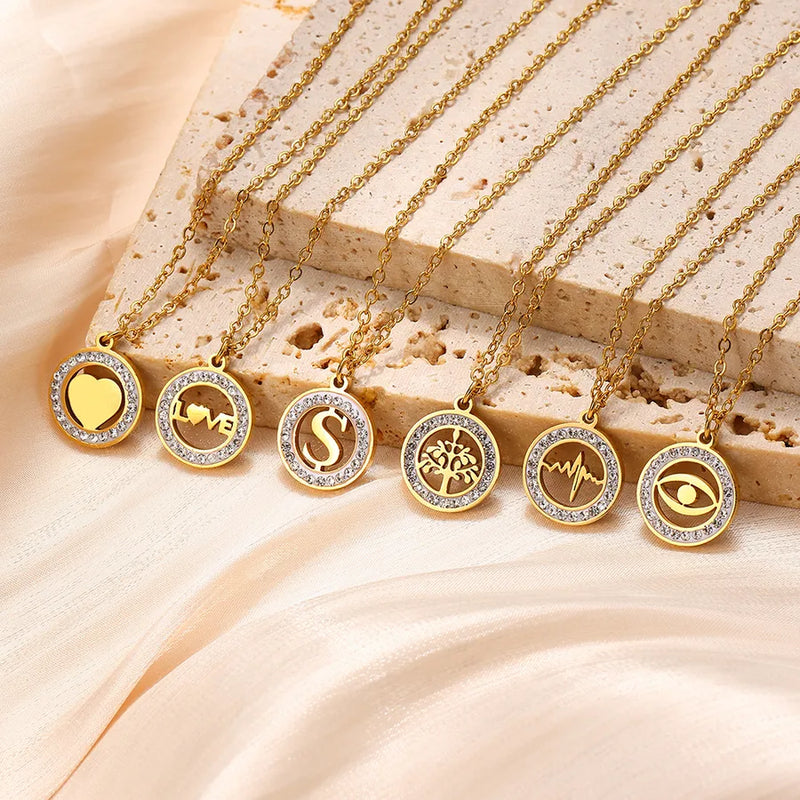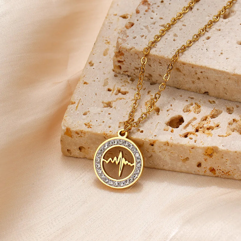 Wholesale Jewelry Glam Luxurious Classic Style Round 304 Stainless Steel cable chain Pendant Necklace