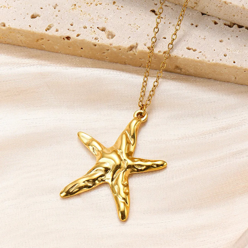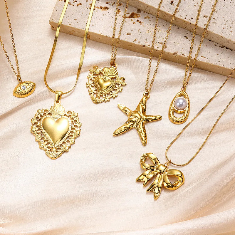 Wholesale Jewelry Glam Luxurious Classic Style Starfish Heart Shape Bow Knot 304 Stainless Steel cable chain snake chain Pendant Necklace