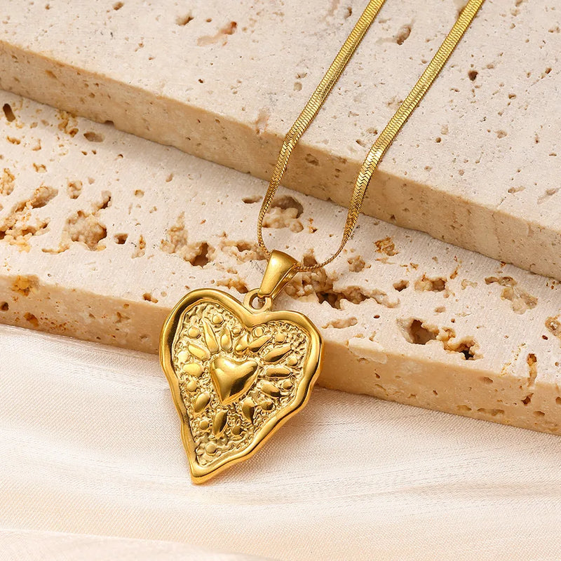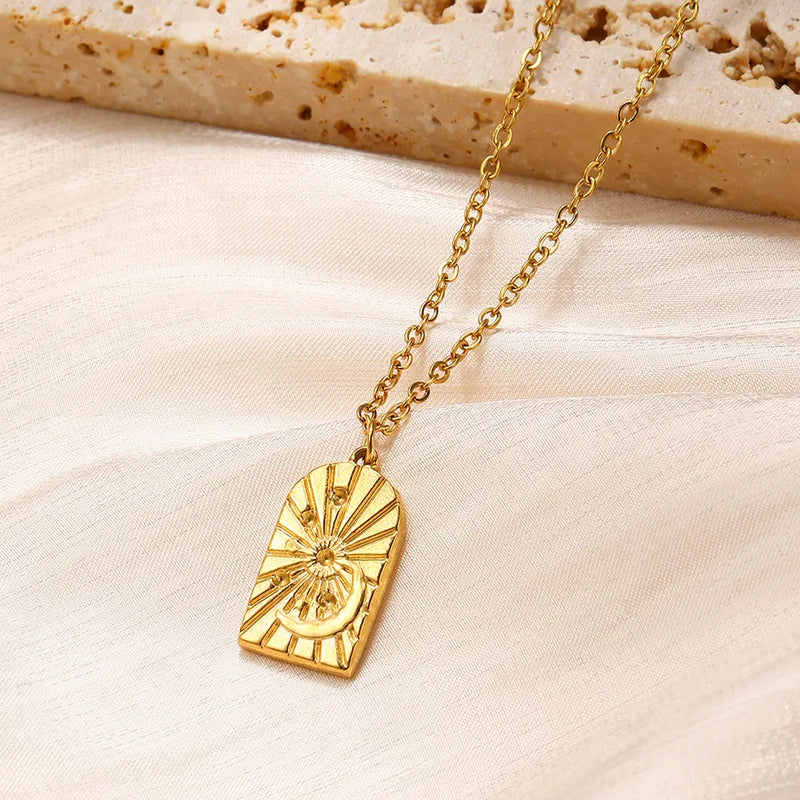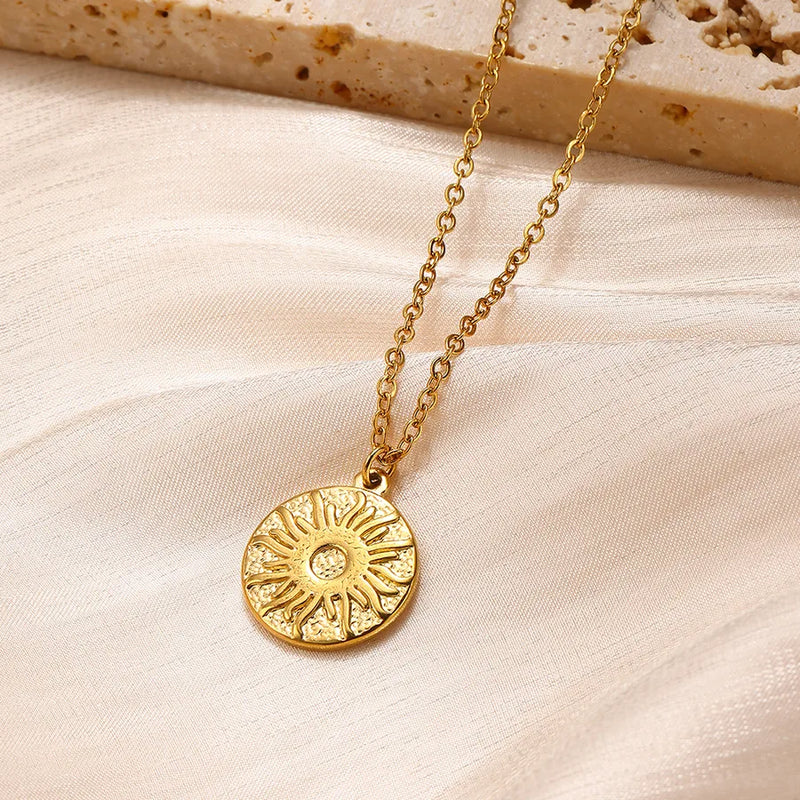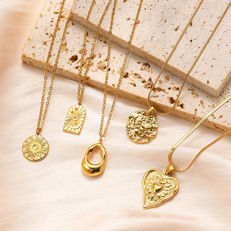 Wholesale Jewelry Glam Luxurious Classic Style Sun Heart Shape 304 Stainless Steel cable chain snake chain Pendant Necklace