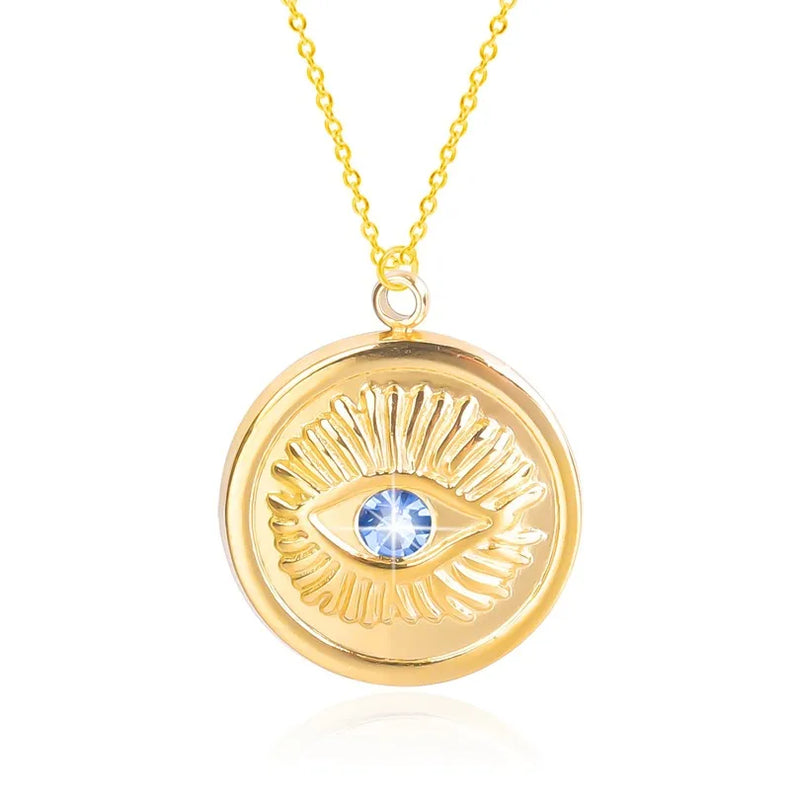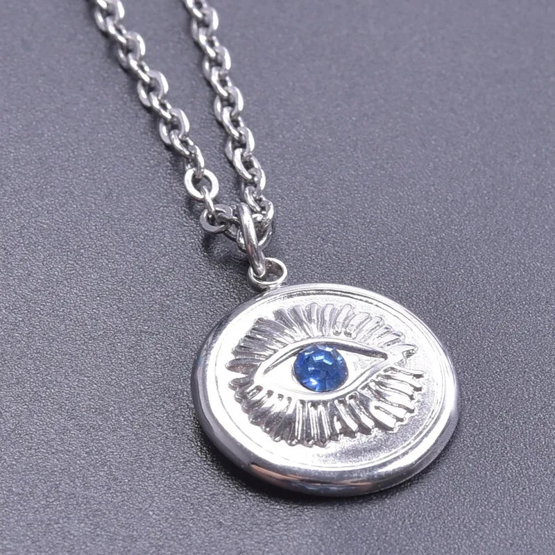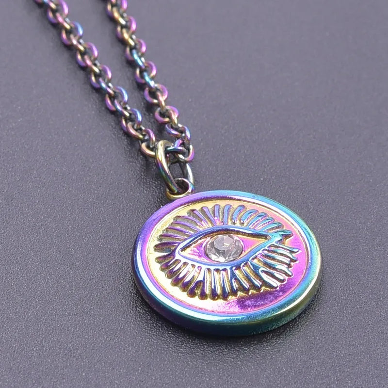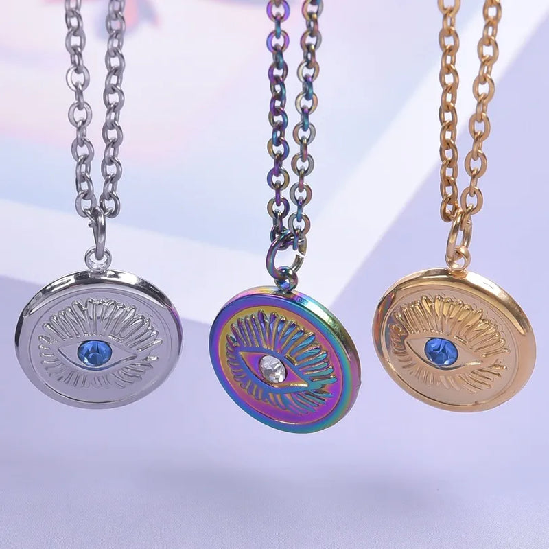 Wholesale Jewelry IG Style Casual Round Devil's Eye 304 Stainless Steel Zircon Plating Inlay Charms Pendant Necklace