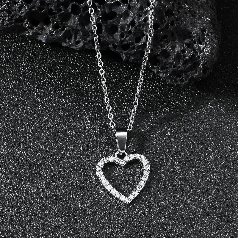 Wholesale Jewelry Simple Style Heart Shape Alloy Titanium Steel Rhinestones Inlay Pendant Necklace