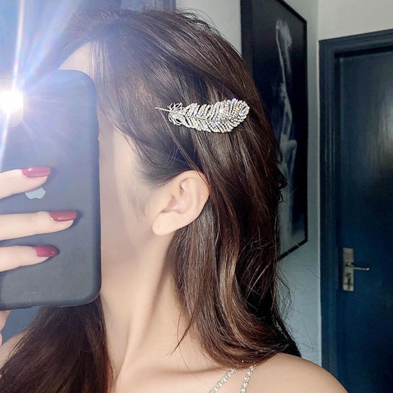 Women's Casual Simple Style Feather Alloy Inlay Rhinestones Hair Clip